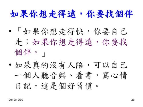 如果你想走得遠,你要找個伴,