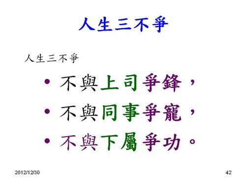 不與上司爭鋒,不與同事爭寵,不與下屬爭功。