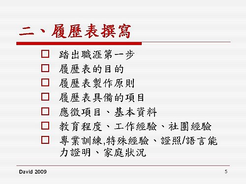 ‧可適當地運用術語,以表示你對該行業有興趣或有一定的認識及經驗,但應適可而止,否則給人拋書包的感覺。