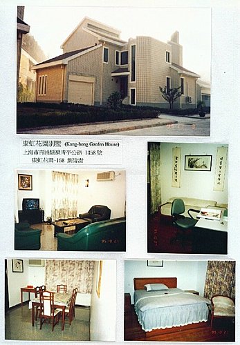 房屋出租 Garden House For Rent ----------------------------------------------------------------------------- 上海康虹花園別墅 (Shanghai Con-Hong Garden House) A31 獨棟 ( 土地 Land 432 square meters 131 坪, 房屋 House 279 square meters 84 坪. ) European-style construction, 279 square meters, 2-floor garden house Big living room, dining room, 4 bedrooms 3 bathrooms, with parking lot remote control garage, good location and reasonable rental.
