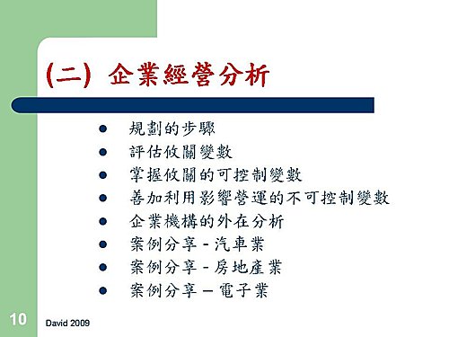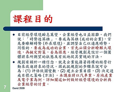 講題:「經營環境分析與經營計劃」
