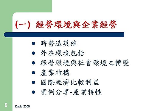 「時勢造英雄」要成為英雄 (成功的企業),首先要瞭解時勢 (外在環境),並調整自己以適應時勢。同樣的,要成為成功的企業,首先必須分析瞭解大環境,再擬定對策,妥為因應。