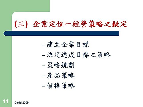 (三) 企業定位一經營策略之擬定