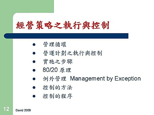 l 估計不可控制因素的潛在影響,並配合那些估計做計劃。
