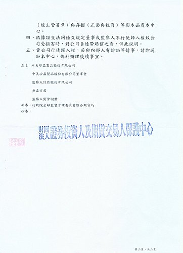 副本: 中美矽晶製品股份有限公司董事會