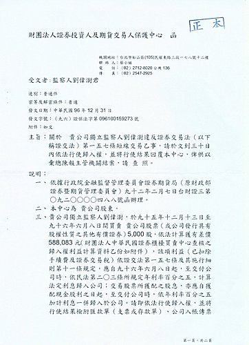 三、從本人買進賣出記錄,96年只有三筆小量交易。由此可知,本人絕非頻繁買賣進出投機之輩,亦無犯意。