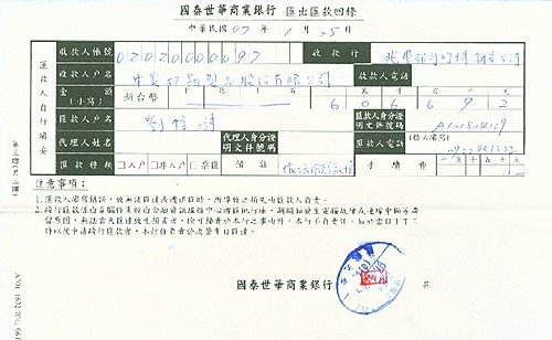 Last night I went to Cathy Bank and ask Peggy Tsai to calculate the total amount for me at NT$606,692 which I already signed it for remittance this morning.