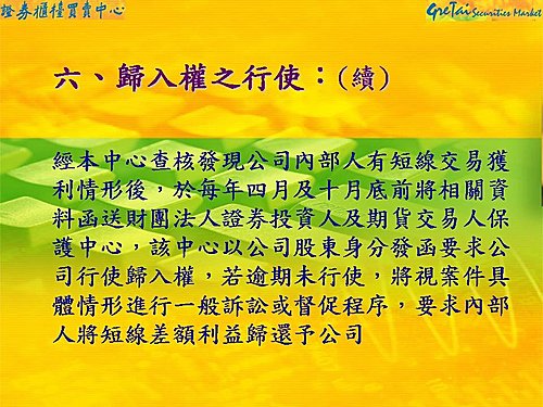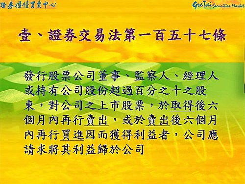 Last Friday I went to attend 證券暨期貨市場發展基金會, 上市公司內部人股權交易法律宣導說明會。Early this year I was punished and paid NT$606,692 to comply with the law. I have summaried this case study as part of 「公司治理」as follows to share with you as well.