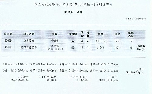 任課教師:劉偉澍 老師 上課時間:週五10~12 節; 6:30 pm-9:15 pm