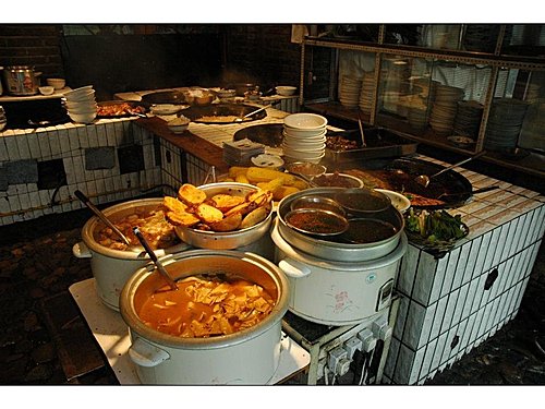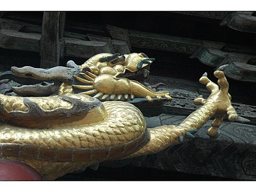 在故宮大門前面的滿清一條街,其建築大都依清朝建築風格而建,可以說是古味十足,而街上的古玩城販賣著一些小玩意、字畫、古玩等。
