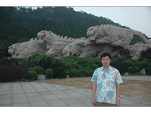 隨後遊覽亞洲最大的城市廣場 — 星海灣廣場,虎灘群雕,星海廣場為紀念香港回歸中國而建之廣場,廣場上的漢白玉華表雕有九條龍,寓意九州,廣場中心仿效北京天壇圜丘,由 999 塊四川紅大理石鋪就,大理石上雕刻著天干地支,二十四節氣和十二生肖,據說星海的華表是中國只最,和天安門那個華表也是長的雙胞胎一樣。