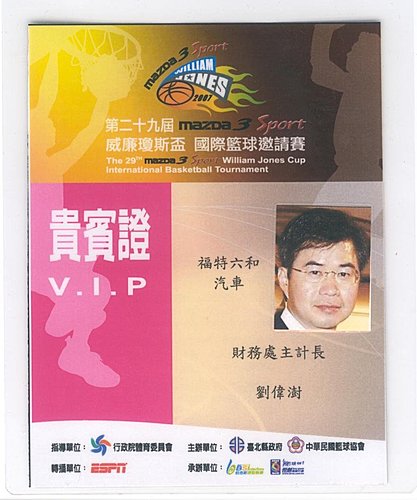 Taipei County majesty 台北縣長周鍚偉 頒第一名 Jordan National Men's Basketball Team as well as the 2nd place to Lebanon National Men's Basketball Team.