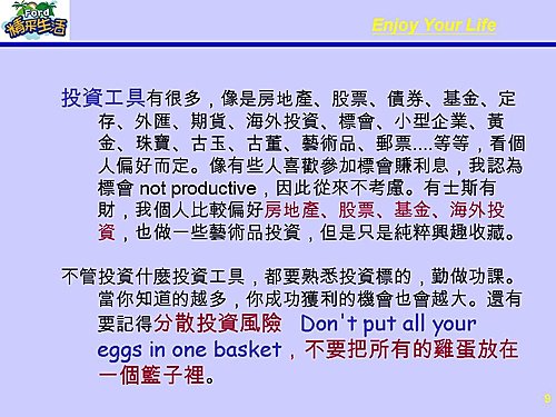 那些願意打開心胸,聽取專業的意見,將金錢放在穩當的生利投資上,讓錢滾錢,利滾利,將會源源不斷創造財富。