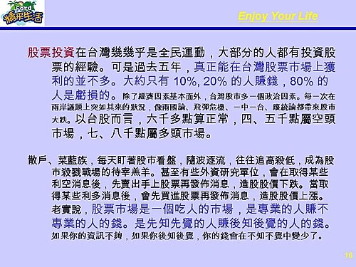 對於擁有金錢而不善經營的人, 一眼望去, 四處都有投資獲利的機會,事實上卻處處隱藏陷阱,由於錯誤的判斷,它們常會損失金錢。