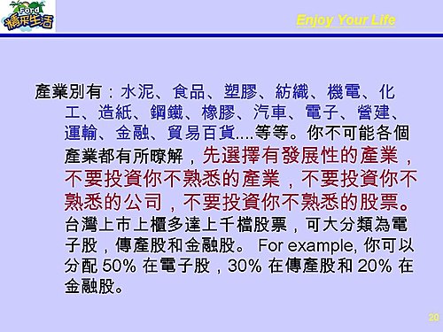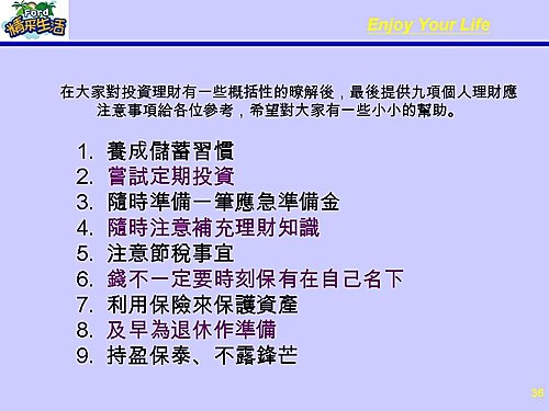 「財富就像樹一樣,從一粒微小的種耔開始成長,第一筆你存下來的錢就是你財富成長的種籽,不管你賺的多麼少,你一定要存下十分之一。」