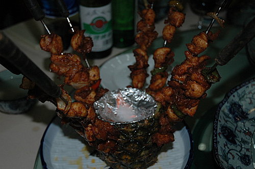 大理─風花雪月酒店南詔宮廷宴, 名城玉院白族風味, 蘭林格酒店烤肉套餐 (全程十菜一湯含水酒 + 盧董 24 bottles of red wine from Taiwan)。