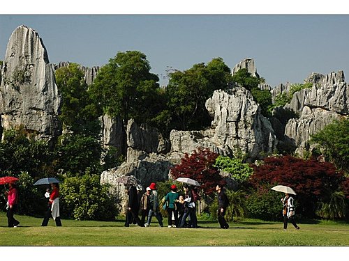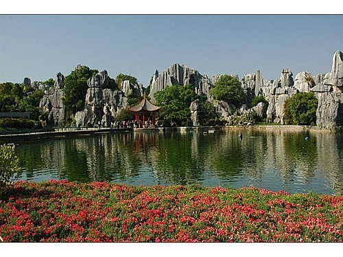 前往參觀●【石林風景區】,素有「天下第一奇觀」之稱,是世界最典型的科斯特地貌景觀,範圍達350平方公里,素有“造型地貌天然博物館”之稱,是中國的四大自然景觀之一。石灰岩地形,景觀特殊,有高達二、三十公尺的石峰、石柱及石筍,遊覽區主要由石林湖、大石林、小石林組成;石林內最高處的望峰亭是觀景最佳的場所,自望峰亭下望莽莽蒼蒼的石林,環列四周,非常雄偉壯觀,隨後專車返回昆明,