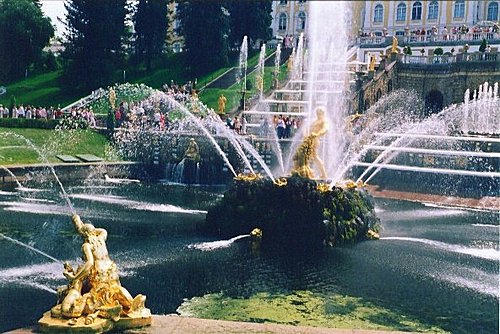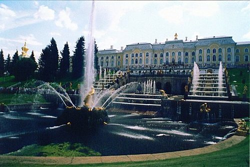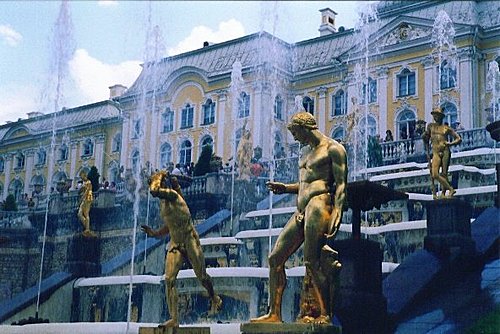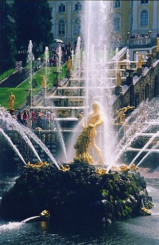 ★『夏宮』,曾為聖彼得堡大帝的行宮,位於芬蘭灣南岸,距離聖彼得堡市區29公里處。分為「上園」、「下園」,有【俄羅斯的凡爾賽】之稱,其下園共有150個噴泉,2000多個噴柱,其中有兩個階梯級的瀑布--「象棋山」和「金山」,其他噴泉的造型也多采多姿,有「亞當」、「夏娃」、「金字塔」、「小塔」、「小橡樹」、「亞歷山大花園」、「惡作劇噴水池」等。各種造型的噴泉爭奇鬥巧,噴珠吐玉,如銀河飛濺,引人入勝。