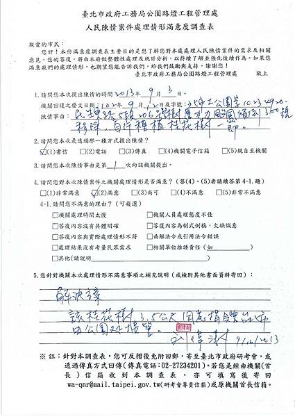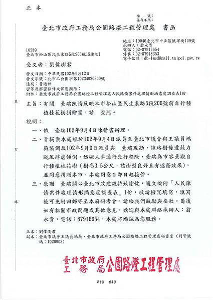 台北市公園處 劉處長鈞鑑
