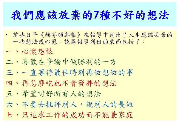前些日子《赫芬頓郵報》在報導中列出了人生應該丟棄的一些想法或心態。該篇報導列出的東西包括了: