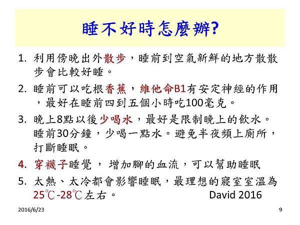- 4. 穿襪子睡覺 , 增加腳的血流,可以幫助睡眠。